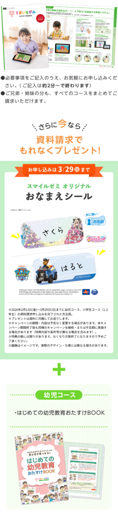 スマイルゼミ資料請求特典の詳細